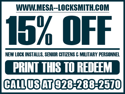 Whether you lost your keys or locked out of your car, call Locksmith Mesa for all your locksmiths services in Mesa, Arizona. Call us now at 928-288-2570 and recieve 15% off a new locks installation by the number professional locksmiths.